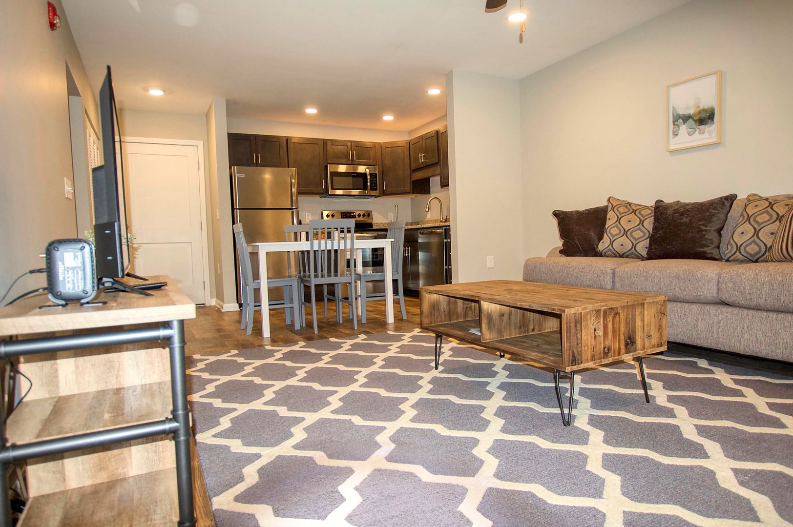 Welcome to our Furnished Luxury 2 bedroom apartment in Kokomo, IN. This apartment offers a modern living experience with all the amenities you need for a comfortable lifestyle. Enjoy the convenience of basketball courts, a courtyard with a pergola, a Fitness Center, and a yoga room right at your doorstep. Stay connected with included wifi and relax in a fully furnished apartment with all utilities included. Experience the ultimate in convenience and comfort at our luxury apartment in Kokomo.