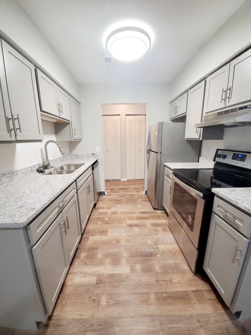 Introducing our newly renovated 2 bedroom, 1 bathroom apartment in the heart of Muncie, IN. This modern living space features luxury vinyl plank flooring, stainless steel appliances, new cabinets, and granite countertops. Enjoy the cozy ambiance of an electric fireplace in the spacious living room. With ceiling lights in every room, you'll always have a bright and welcoming atmosphere. Residents have access to top-notch amenities including a tennis court, conference rooms, resident lounge area, 24-hour fitness center, dog park, basketball court, and picnic area. Experience the ultimate in comfort and convenience at our Gut-Renovated 2 Bedroom 1 Bath with an Electric Fireplace apartment.