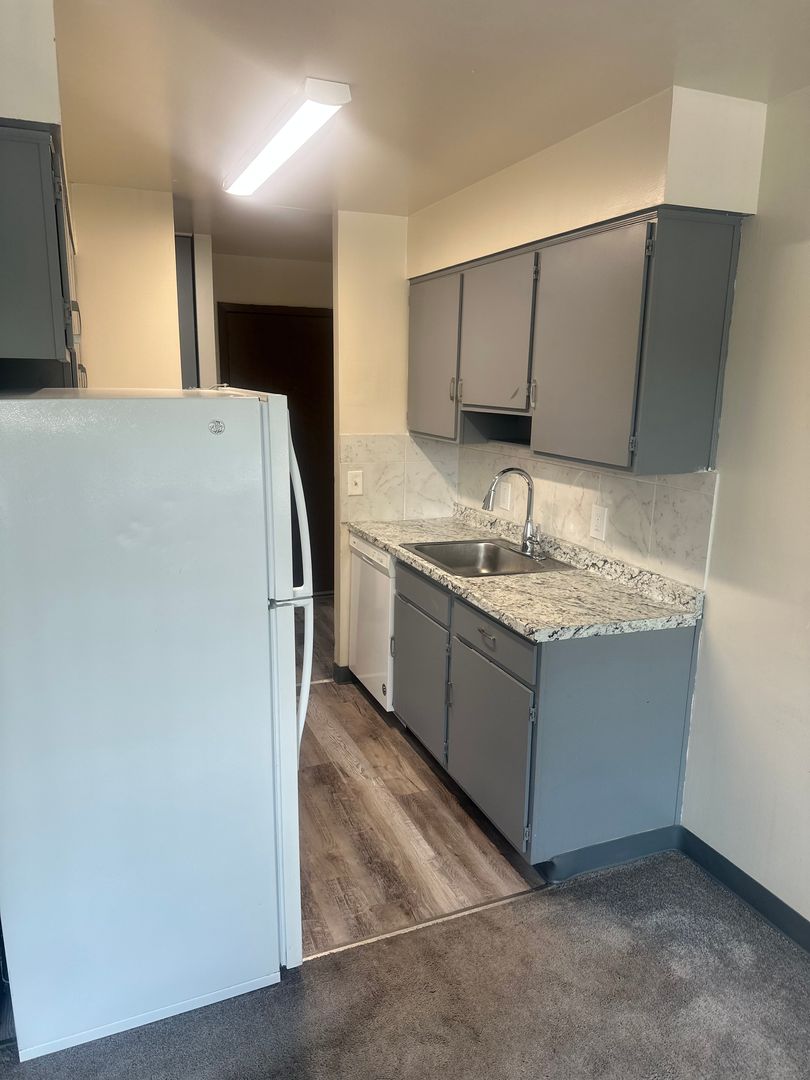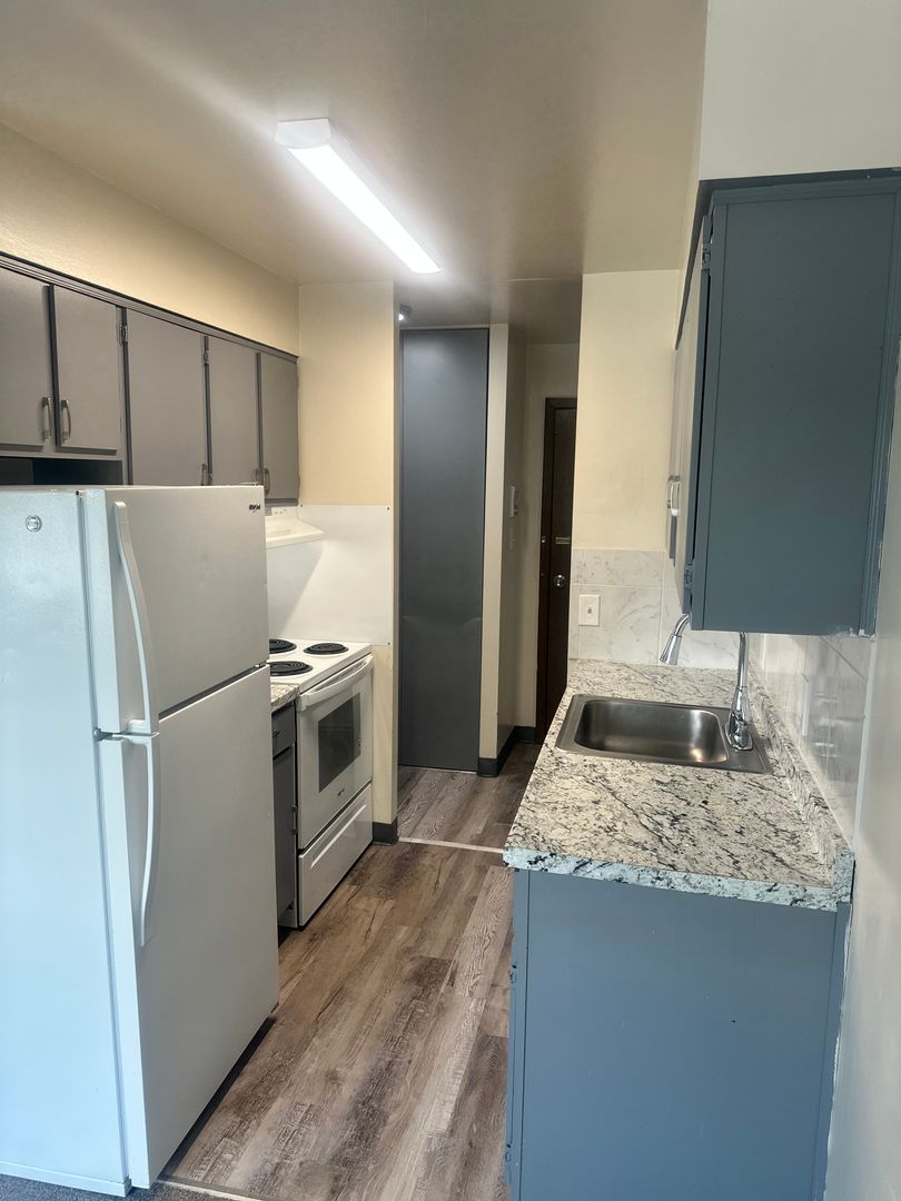 Totally redone 1 bedroom apartment. New flooring, new kitchen, new bathroom.