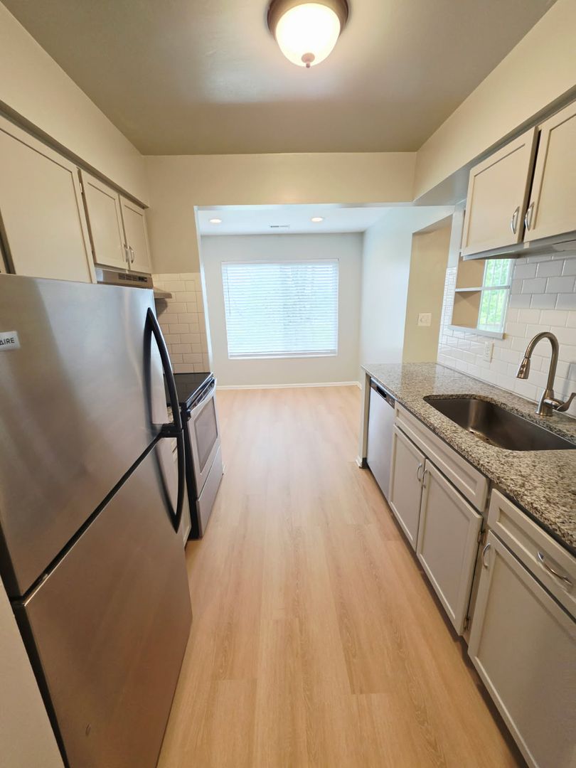 This apartment has refurbished cabinets, granite counter tops, stainless steel appliances, ceiling lights in every room, and a remodeled bathroom. It is located on the 3rd floor with a pretty view off the balcony.