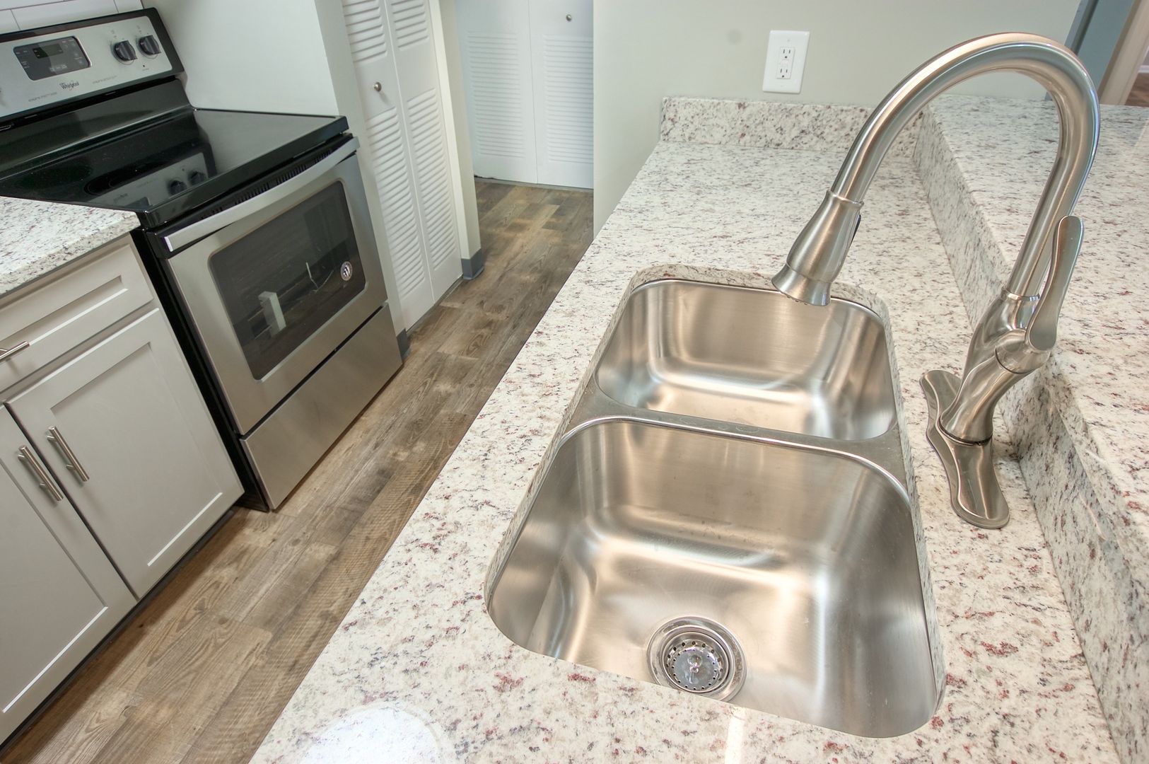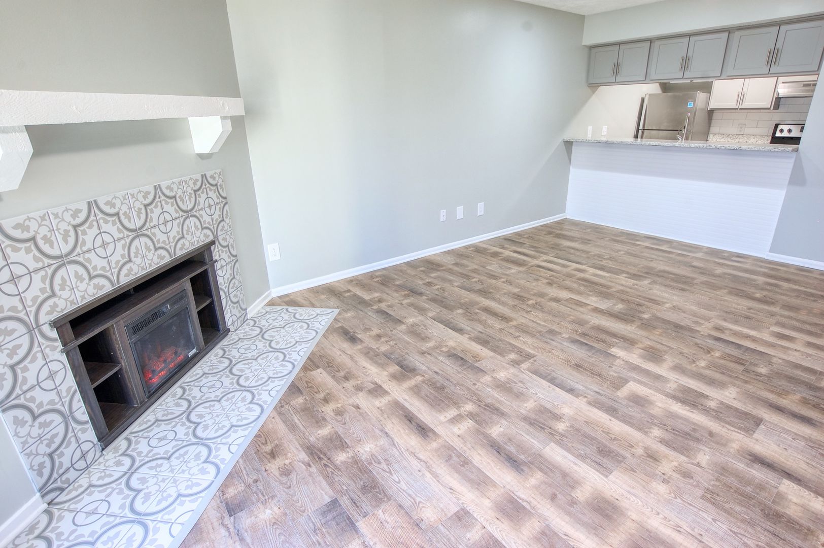This unit features luxury vinyl plank flooring, an electric fireplace, granite countertops, subway tile backsplashes, stainless steel appliances, all new fixtures etc. etc.